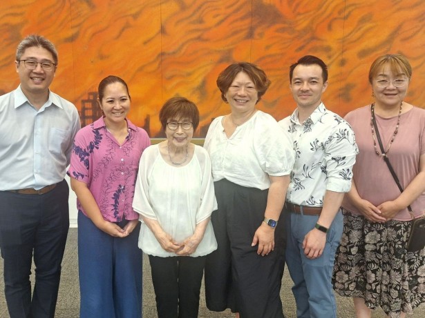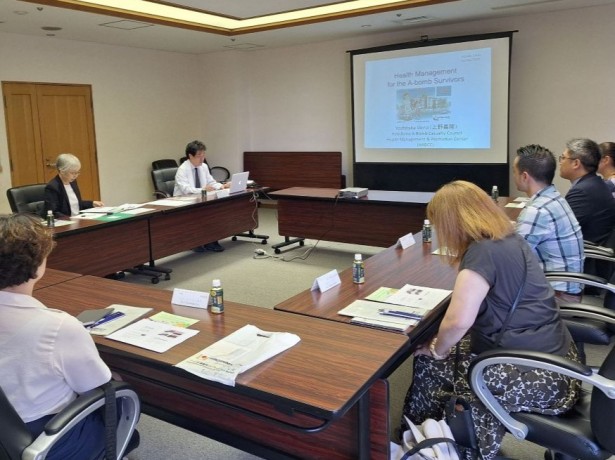 With Research Division Director Uemoto (3rd from left), Atomic Bomb Survivors Relief Department of Hiroshima City