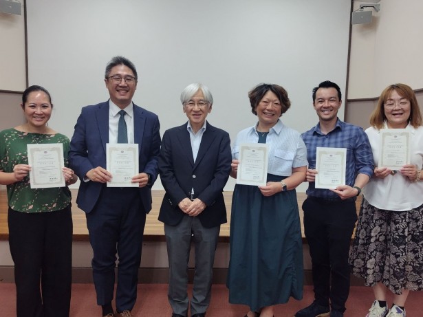 With HICARE President Prof. Kamiya (3rd from left) at the training completion ceremony, RERF.