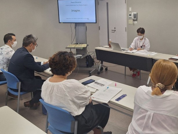Lecture by Vice President Fujimoto (2nd from right) at Hiroshima Red Cross Hospital & Atomic-bomb Survivors Hospital.