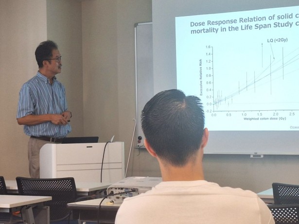 Lecture by Division Chief Yoshida (left), Division of Clinical Laboratories, Department of Clinical Studies at RERF