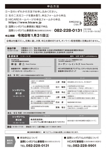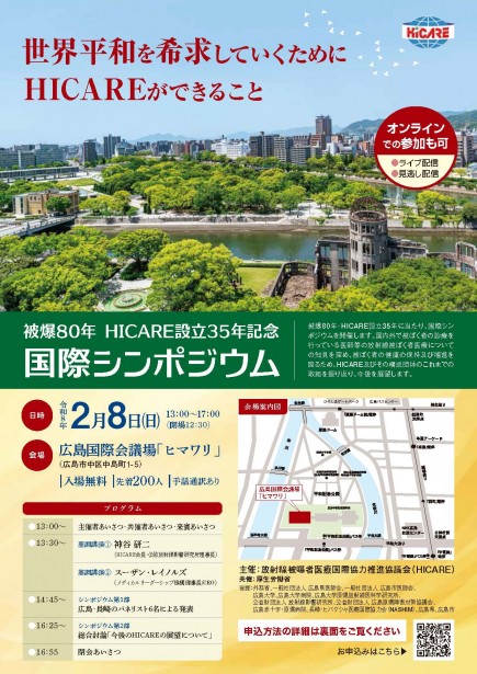 被爆80年、HICARE設立35年の節目にあたり国際シンポジウムを次のとおり開催します。